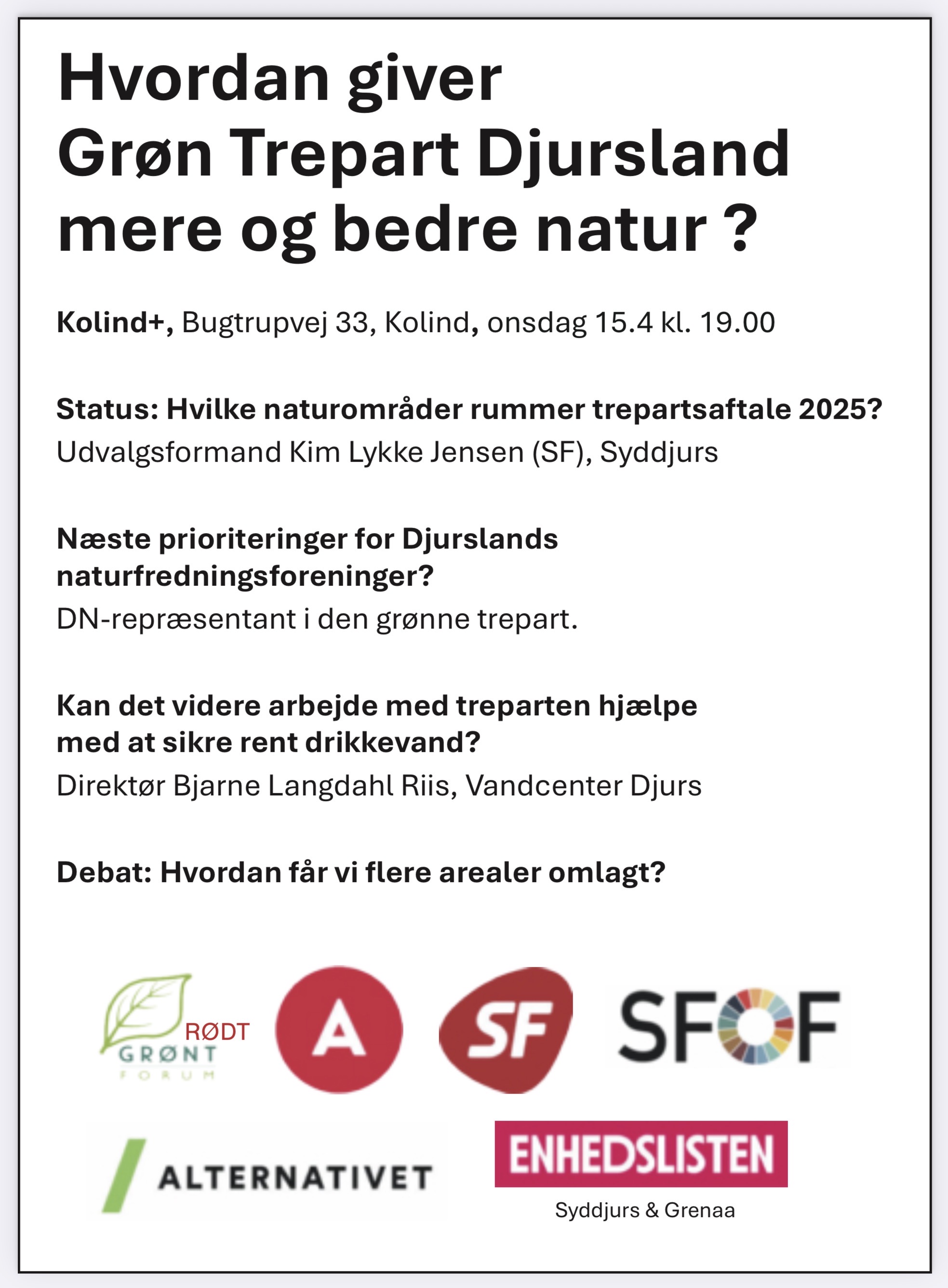 Onsdag d.15.april kl.19 er Alternativet med til at arrangere et offentligt møde om Grøn Trepart. Alle er velkomne.